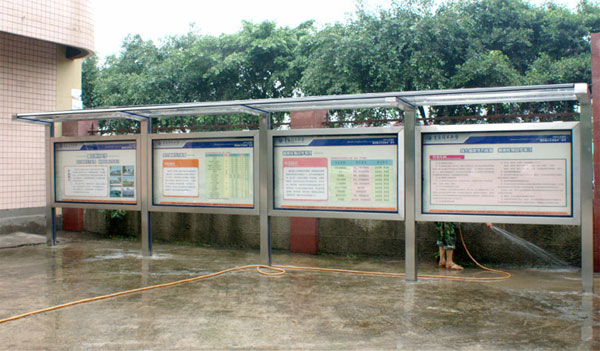 即便遇到大風(fēng)冰雹等惡劣天氣,不銹鋼宣傳欄依然可以穩(wěn)固的立在原地,節(jié)省了維修費(fèi)用,有效減少了砸傷行人等意外事件。